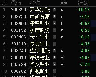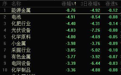能源金属板块以8.76%的跌幅,领跌A股。赣锋锂业、天齐锂业等个股跌超6%。