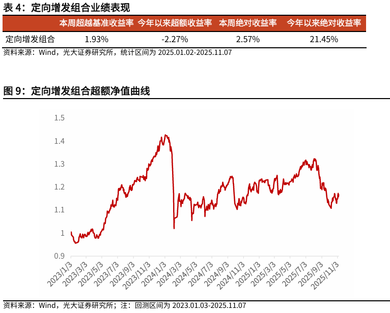 本周定向增发组合相对中证全指获取正超额收益,定向增发组合相对中证全指获得超额收益1.93%。