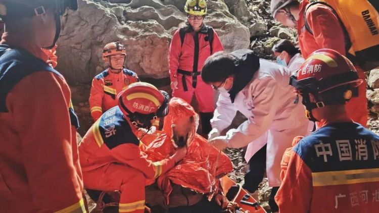 该男子于11月15日起与外界失去联系,河池消防于11月18日接到报警后,立即联动凤山县的应急、公安、卫健、CRC洞穴救援联盟等力量,历经3天搜索,于20日成功将其救出。
